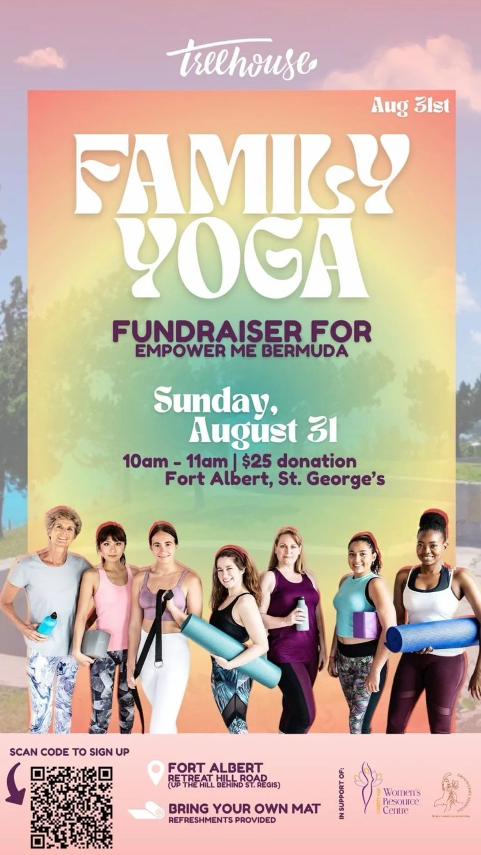 oin us for a relaxing and fun Family Yoga session in the scenic setting of Fort Albert, St. George’s. This one-hour session is open to all ages and abilities — a perfect way to spend a Sunday morning together.